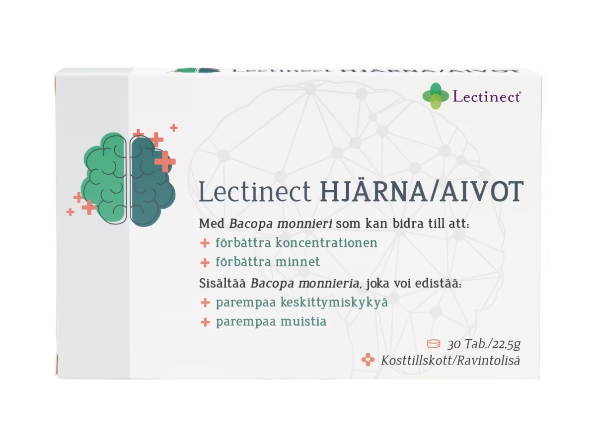 Lectinect Aivot on ravintolisä, joka sisältää huolellisesti valittuja vitamiineja ja mineraaleja normaalia psykologista ja kognitiivista toimintaa varten.