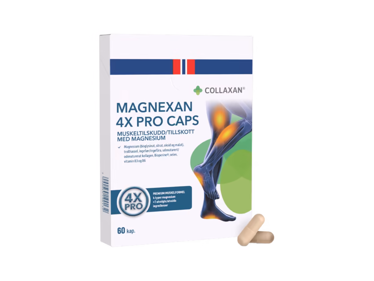 Magnexan 4X Pro on huolellisesti kehitetty ravintolisä, joka sisältää vitamiineja, mineraaleja, kollageenia sekä kasviuutteita, kuten inkivääriä ja taikapähkinää.