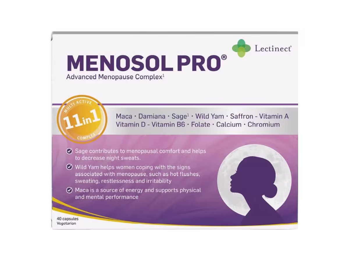 Menosol Pro on vaihdevuosi-ikäisille naisille kehitetty ravintolisä, joka sisältää huolellisesti kootun yhdistelmän kasviuutteita, vitamiineja ja kivennäisaineita. Tuote on koostettu kokonaisvaltaiseksi 11-in-1-yhdistelmäksi ja voi olla osa monipuolista ruokavaliota ja terveellistä elämäntapaa elämänvaiheessa, jossa kehon tarpeet voivat muuttua.